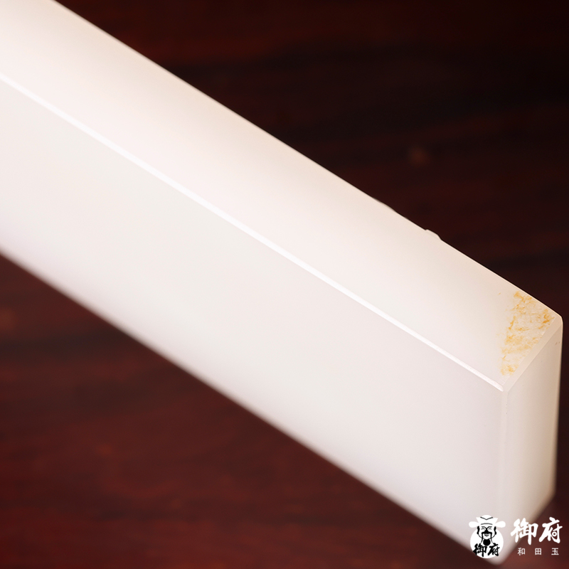 側(cè)面保留原毛孔皮,灑金皮熠熠生輝,與白皙無暇的玉質(zhì)交相輝映,過渡自然,高貴大方。