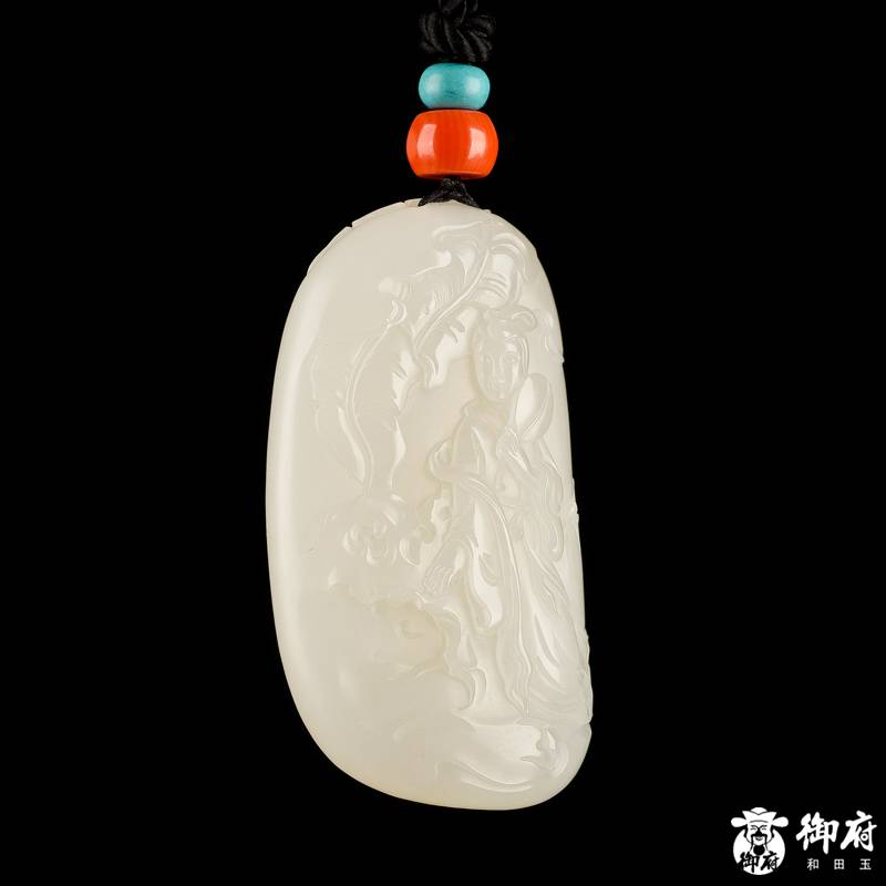 《芭蕉仕女》為新疆和田玉白玉籽玉作品,玉質(zhì)細(xì)膩溫潤(rùn),成色均勻,瑩亮光澤,油潤(rùn)順滑,手感舒適。
